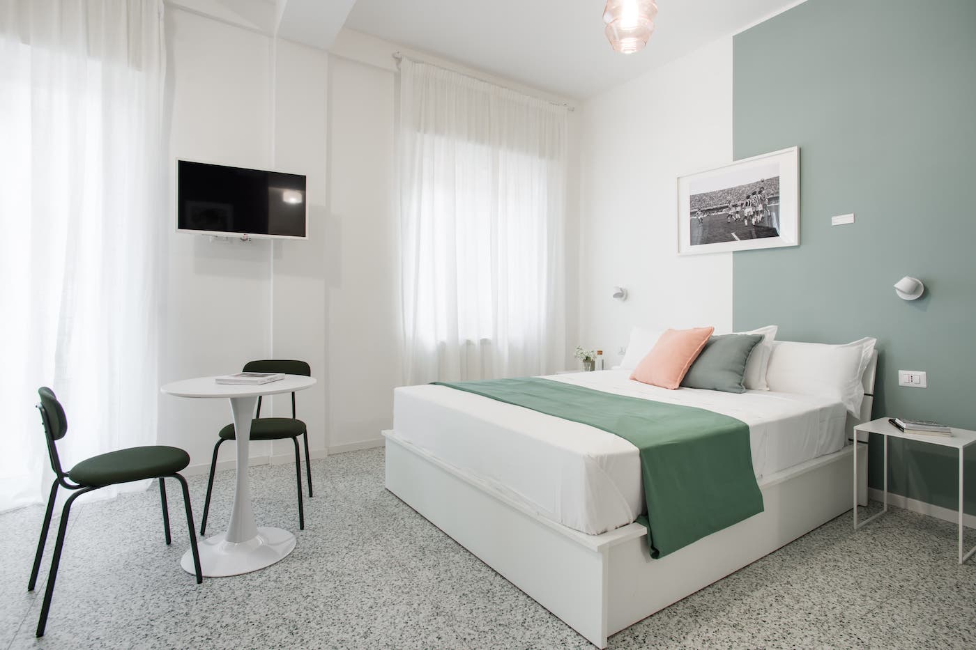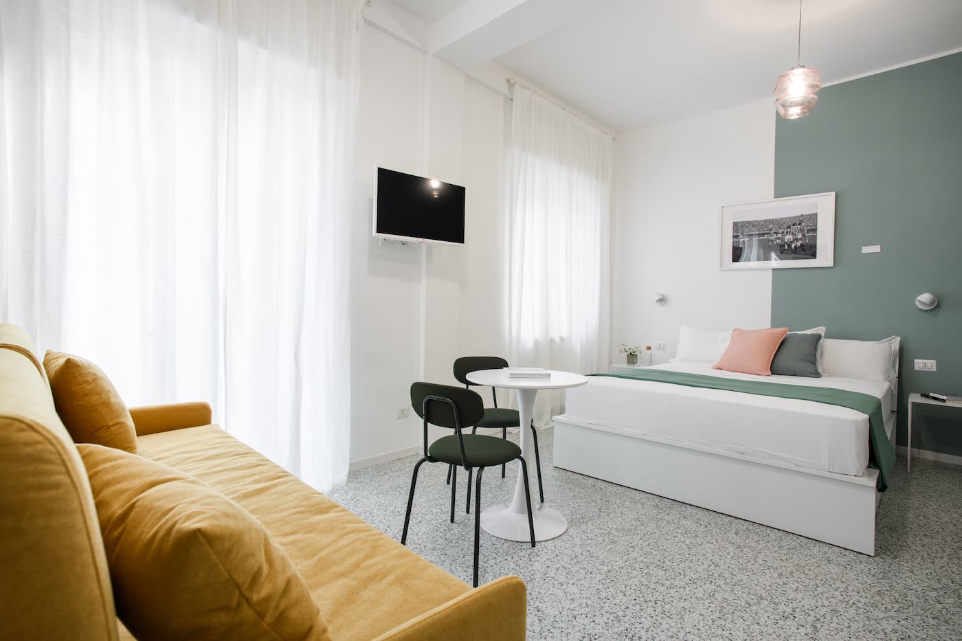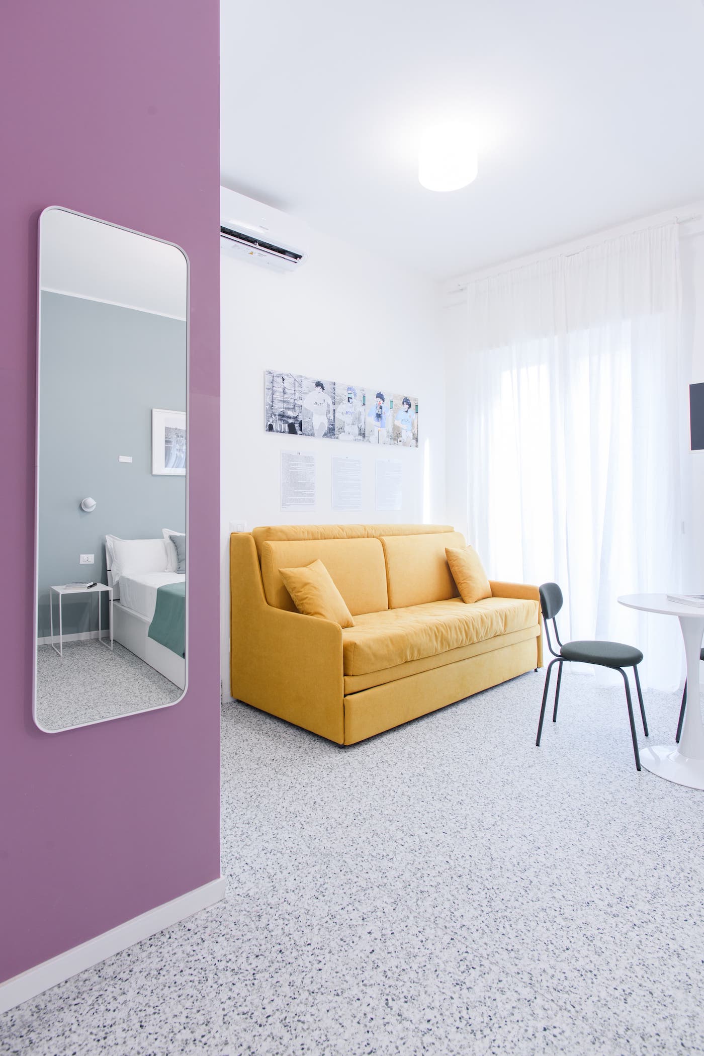 Ampia, luminosa e travolgente, la Camera “Rivoluzione” è un inno al lato più combattivo e geniale di Maradona. Con i suoi 24 m², accoglie fino a 4 persone e si ispira alla forza creativa, irriverente e popolare che ha cambiato per sempre il volto di Napoli e del calcio.