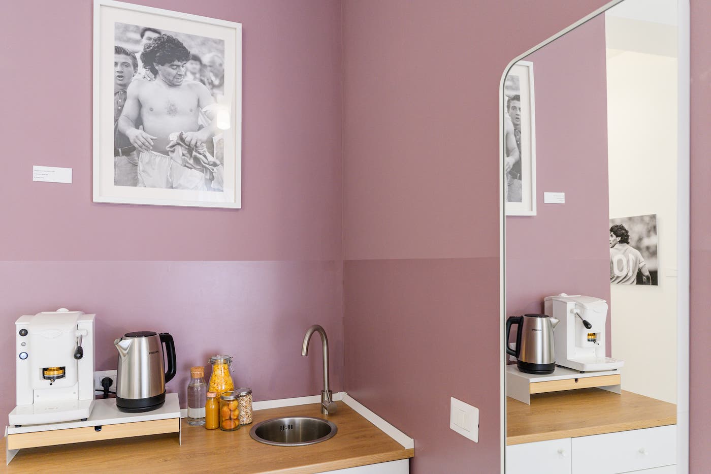 “Rivoluzione” è più di una camera: è un manifesto di libertà e orgoglio napoletano, il luogo ideale per chi vuole sentire ancora pulsare lo spirito di Maradona. Qui si dorme, si sogna, si ricorda che le rivoluzioni – quelle vere – partono dai piedi, ma arrivano dritto al cuore.