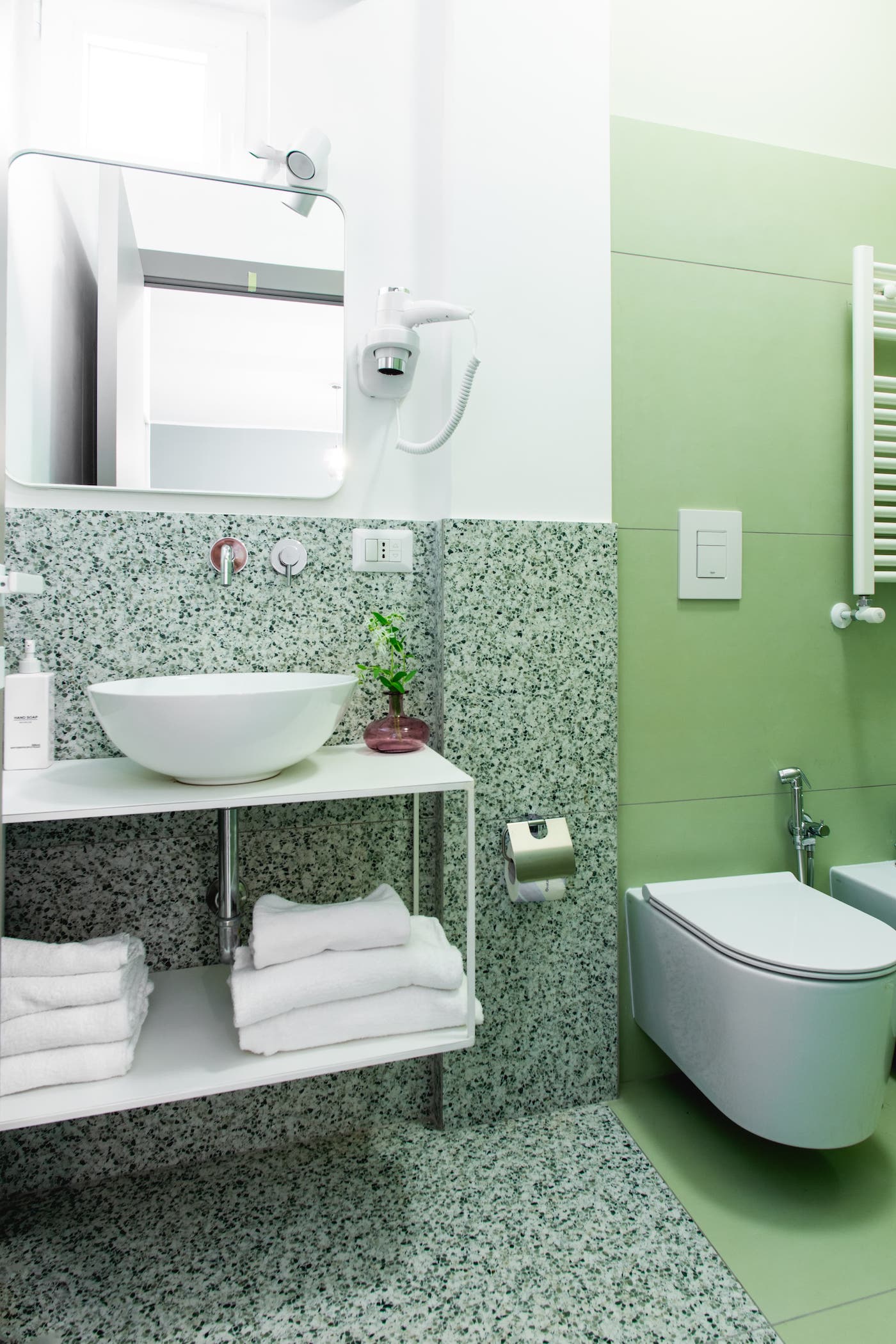 Vasca o doccia, bidet, WC, asciugamani, asciugacapelli